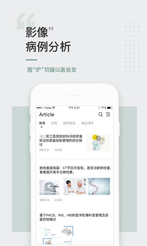 3、提供丰富的医疗教育类放射影像资源,实用的学习课程及医学生全方位的考试交流;