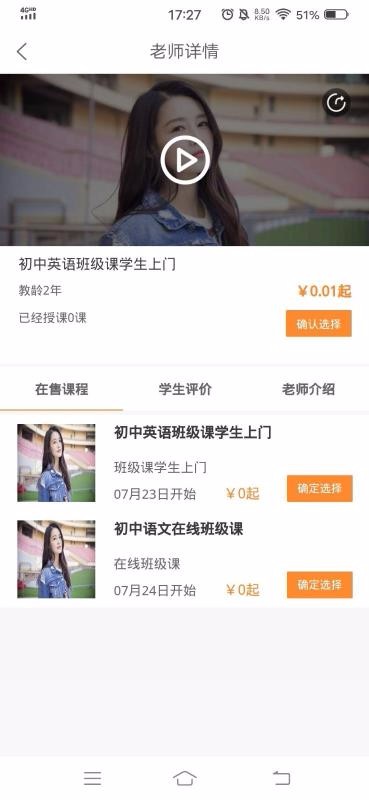 5、查看老师的课程和评价,知道老师的教学质量