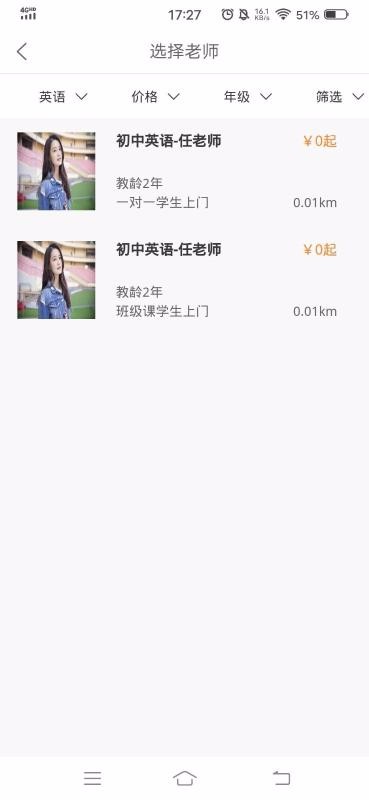4、自由筛选价格、年级、学科的老师,让你的老师选择更准确更便捷;