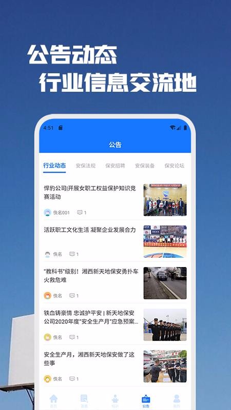 6、点击公告,选择行业动态、安保法规、安保装备等