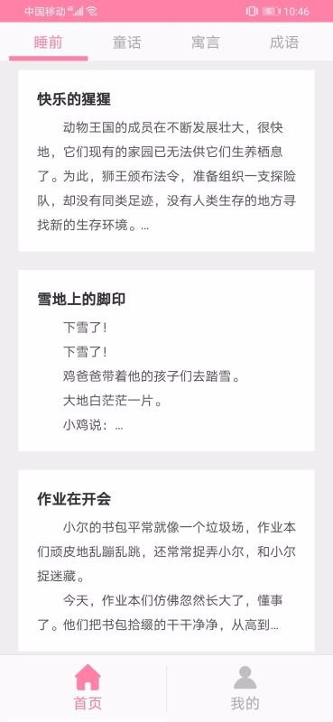 3、一目了然的故事内容,每个故事都展示了明显的故事标题和相应的故事摘要;