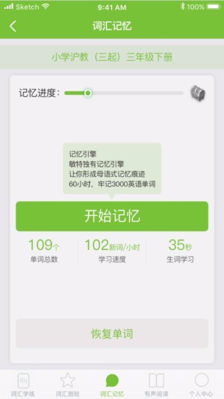 2、记忆引擎模式,采用独特的单词学习方法,能够让您在60小时内记住三千单词;