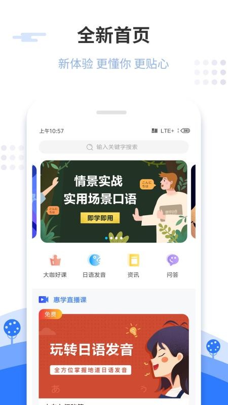 惠学日语app是一款优质的在线日语学习软件,这里为用户提供了大量的日语学习资源,拥有各种优质的学习课程,能够让你轻松的从零基础变成日语达人,并且每天都有大量的免费公开课,你可以在这里免费进行学习,还可以在课堂上提出自己的难题,拥有专业的日语老师为您在线解答,让你可以更好的进行理解;并且每天都有大量的免费直播课程,不需要你花费任何费用就可以在这里进行学习,你还可以在这里咨询自己不懂的日语问题,拥有专业的老师能够及时的为您解答,让你可以轻松的进行理解,得到更好的效果。
