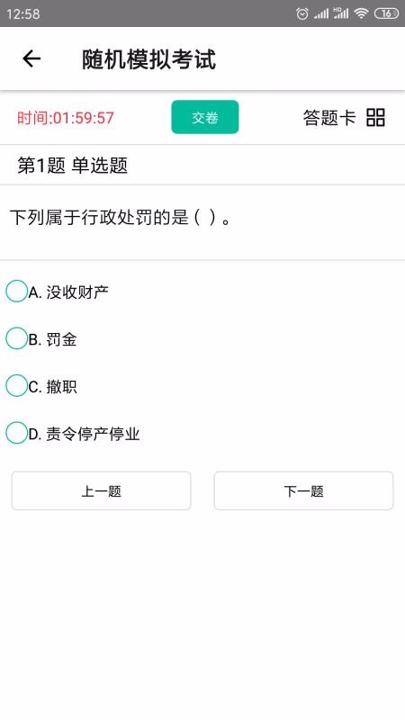 5、选择模拟考试,实时统计时间,完成答题之后就可以及时的进行交卷;