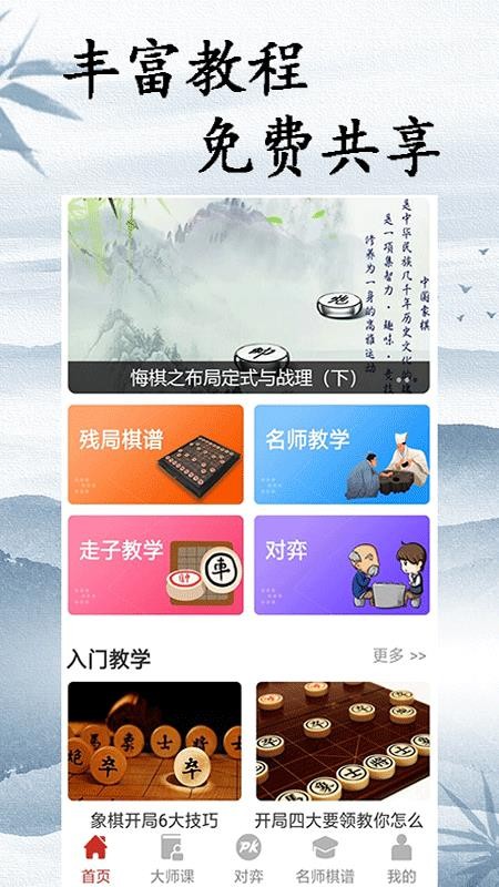 2、查看首页中显示的各种入门教学内容,快速进行象棋入门学习