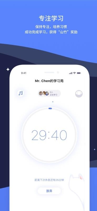 Stady学习局app是一款相互监督的学习软件,这款软件提供很多趣味学习工具,用户在这里可以通过学习时间获得山竹奖励,山竹可以用来为喂养电子宠物小猫,提高学生学习的兴趣,还可以让学习更加轻松,能够培养学生热爱学习的好习惯;软件为用户打造轻松趣味的学习环境,用户可以加入学习小组中,与更多的人一起学习,相互监督,相互鼓励,获得新的学习动力;用户可以随时查看同学的学习时长,也可以邀请用户一起在图书馆学习,共同进步;还能在线PK学习,查看谁学习的时长最多,提高学习的时间,同时提高自己学习的兴趣。