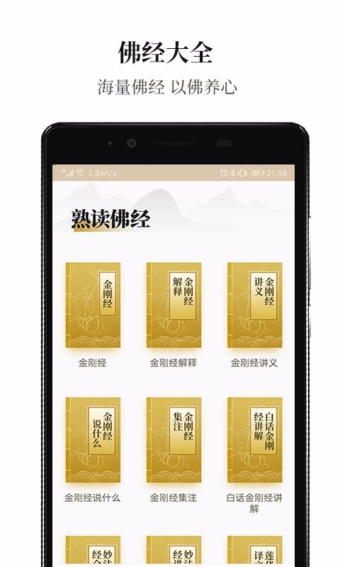 1、拥有海量的佛经,能够让您阅读各个种类的佛经知识,以佛养心;