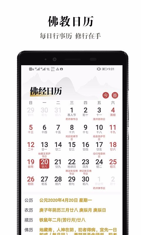 3、提供有佛经日历,清晰记录每个与佛教有关的日子,还有详细的解析;