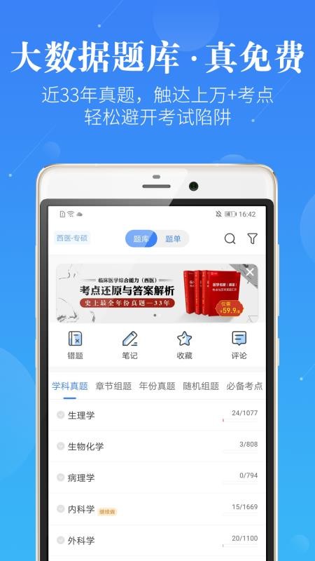 蓝基因app是一款专业的医学教育考试学习软件,这里能够为用户提供海量优质的医学考试题目,收集了大量的历年考试真题,让你随时随地都能进行考题训练,更有大量的视频课程,涵盖医药护、职业资格、学历教育、考研等多种课程资源,能够更好的满足用户的各种学习需求,让您可以轻松有效的在这里进行学习;同时还可以根据用户的做题数据为您自动的随机出题,让你可以通过手机在这里更好的进行刷题,并且你可以在这里下载各种视频学习课程,让您没有网也可以随时观看学习,非常的方便,你也快来下载安装体验体验吧。