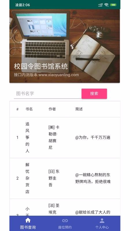 2、选择图书查询,可以直接输入图书的名字,及时的进行检索显示;
