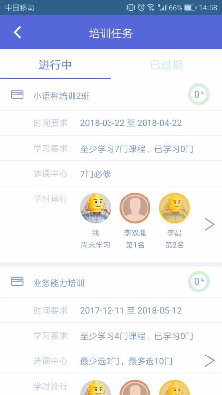 3、丰富的培训任务课程,可以查看培训课程的时间、学习要求、学时等;