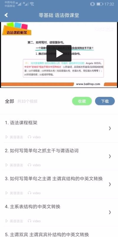 英语语法精讲app是一款学习英语的手机软件;这里有专业的英语语法知识,提供音视频课程,支持用户选择需要的课程进行学习;这里的课程种类丰富,用户可以选择到更适合的课程学习,学习更有效果;推送学习方法,支持用户详细的查看,有效的掌握更多的学习方法,学习更轻松;使用这款软件学习英语语法知识,收获更专业的知识,分类学习更加的人性化,重点难点清晰的掌握;这里还有下载视频的功能,支持用户将观看的视频课程进行下载,下载成功后可以离线观看;还有众多的功能,赶紧下载学习吧。