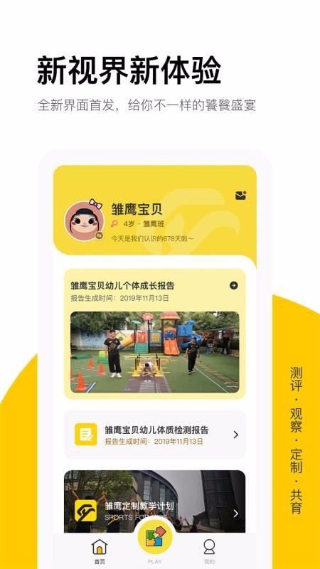 6、直观展示丰富的报告内容,首页能看到个体成长报告、体质检测报告以及定制教学计划等窗口;