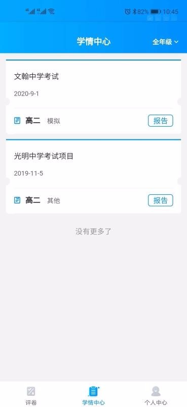 2、切换不同的年级查看报告,使用年级切换功能可以切换管理不同年级;