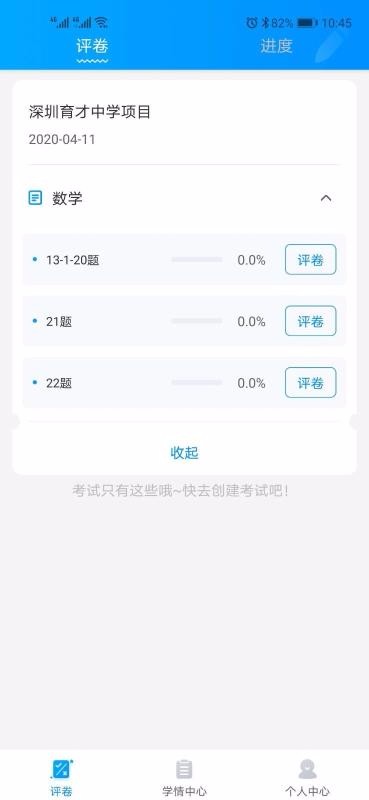 5、跟进评卷进度,从评卷栏切换到进度栏后就能跟进相应的进度状态;