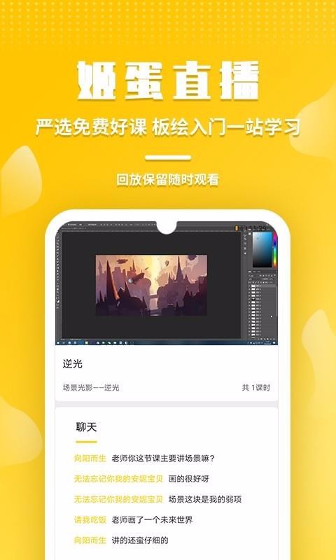 姬蛋app是一款可以学习绘画的手机软件;这里有海量的绘画课程,你可以随意的选择课程学习,能够学习到更加专业的绘画知识;学习之后可以及时的发布自己的作业,可以让更多的人发现你的作品;支持用户查看更多人的作品,可以及时的互动交流,了解更多人绘画的心得;推送直播课程,可以及时的观看直播,观看直播时支持与老师在线互动;提供绘画教程,你可以及时的查看详细的教程,帮助你更好的完成绘画作业;选择课程更加的随意,课程非常的丰富,专业的老师教学,学习更有效果。
