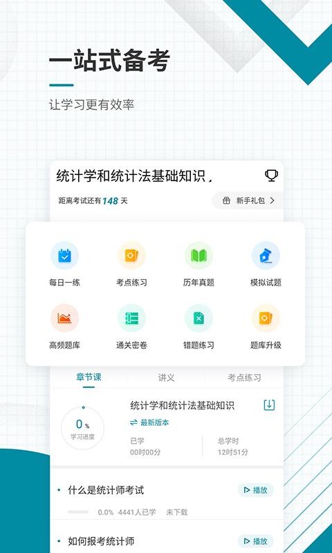 初级统计师准题库是一款统计师备考学习软件,汇集海量的学习资料,为用户提供系统的资料学习,方便用户在线就可以学习到考试所有的知识点;在软件中设置有不同类型的学习专区,包括每日一练、考点练习、历年真题、模拟测试等等,用户可以使用每日一练来积累重要的知识点,每天学习一点点,坚持学习就可以掌握很多知识;根据每年的考试以及学习的知识内容,将考点统计在考点练习专区中,进入全面学习知识点内容,掌握重要的考点知识,备战统计师考试;同时可以进入历年真题中练习真题题目,了解出题的走向和高频考点,学习更多的知识内容。