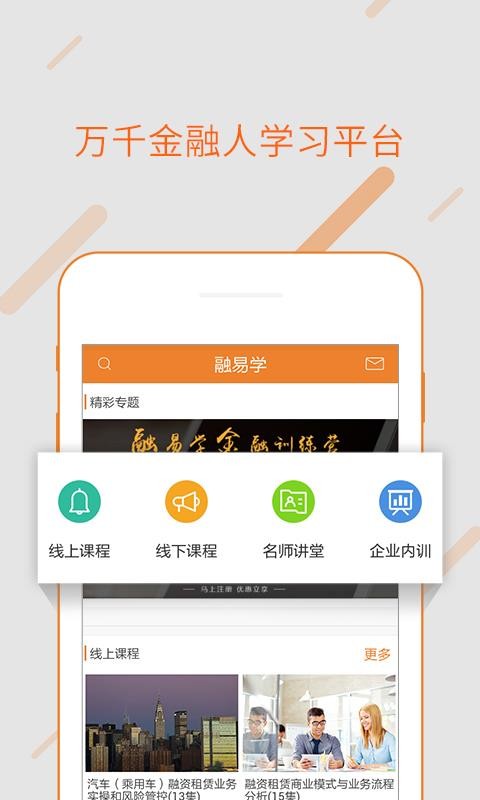 融易学是一款提供金融学习的软件,平台里具有海量的金融知识,用户在线就可以快速的进行使用,了解到更多的金融信息,让你可以随时随地的进行使用,获得优质的服务;平台为职场的人员提供了大量的金融专业知识,每一个知识点都具有详细的讲解,用户在使用的过程中能够根据自己的情况快速的进行使用,实时的满足你的需求,让你可以实时的了解专业的金融知识,使用户更好的寻找工作;平台里具有专业的教育机构,提供了专业的老师在线提供服务,可以帮助用户快速的解决各种学习的问题,增加用户的学习能力,在平台里更好的进行使用。