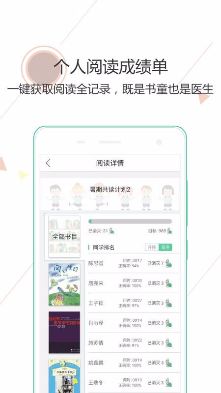 3、提供的暑期共读计划非常的详细,榜单实时的更新方便学生随时查看;