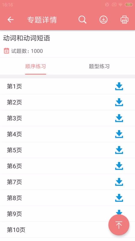 4、点击专题精讲窗口即可打开该页面,浏览详情页的顺序练习列表并选择下载