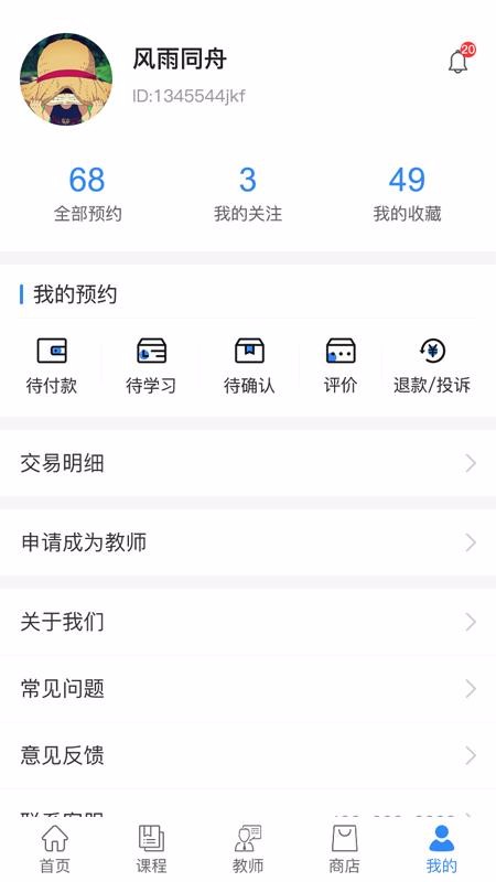 6、显示丰富的个人预约数据信息,在个人中心能看到自己收藏的数量、关注数量,还能看到全部预约数量;