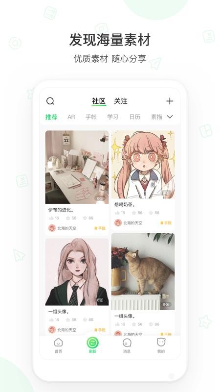 6、海量素材,包括学习、日历、素描、手账、AR等不同类型的优质素材;