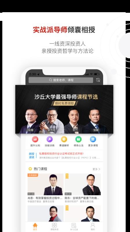 1、用户可以在首页中看到各种热门课程,快速学习热门的创投知识;