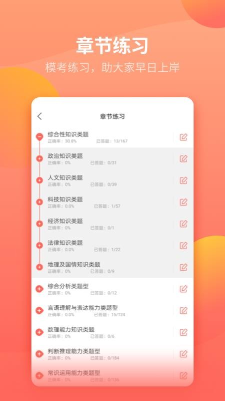 1、为用户提供考点练习和章节练习功能,让用户能够针对性的练习知识;