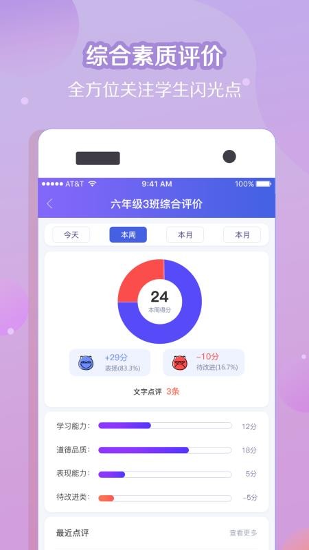 4、查看综合评价信息,根据各方面的情况来评价班级的本周学习的情况;
