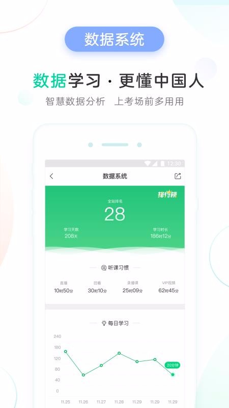 5、提供数据系统给用户查看,平台实时的记录用户的学习时长等生成学习报告;