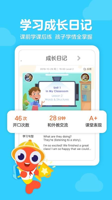 3、打开手机就可以随时随地的进行学习,让孩子能够更好的提升自己的英语水平;