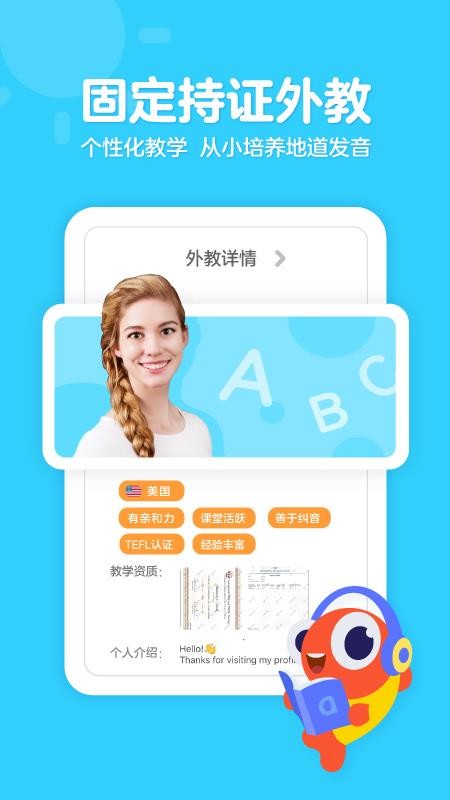 伴鱼少儿英语是一款为孩子提供英语学习的软件,具有优质的教育方式,根据孩子的年龄情况,为孩子制定合理的学习计划,帮助孩子更好的学习英语,让孩子从小养成学习的英语的习惯,更好的提升孩子的口语能力,使孩子能够拥有一口流利的英语知识,快速的进行使用;平台里有大量的学习资源,孩子可以根据自己的情况快速的进行选择,实时的满足你的学习需求,帮助孩子能够认识让更多的英语知识,高效的进行学习,获得优质的学习服务;平台里具有专业的老师在线进行教学,帮助学生更好的进行学习,让孩子能够感受到学习的乐趣。