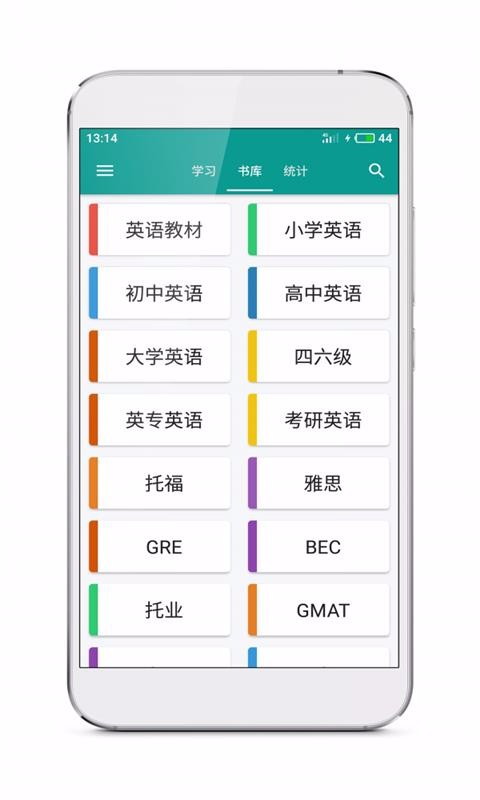 英语100是一款提升自己英语实用能力和考试能力的软件,开设了学习、书库以及统计栏目中心,可以在学习栏目中看到自己学习的进度历史、在书库中挑选自己想要学习的教材、在统计中心查看自己的学习总体统计分析;书库中汇集了各种不同阶段与不同用途的英语书库教材,可以看到里面从小学到大学,再到考研专用的英语书库标签,该类标签主要能满足用户在学校学习过程中的备考需求,另外还有托福以及雅思等难度更高的英语学习资源,通过这些教材资源能学习到更加丰富的英语知识,获得更多的英语理解能力,也能帮助自己出国旅行或留学提供更多的沟通基础积累。