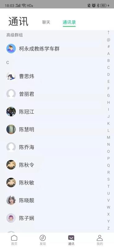 4、点击通讯录,可以快速的联系学员,让学员更好的练习