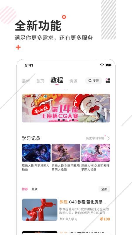 1、为用户提供大量的最新作品和教程等内容,让用户看到新鲜知识;