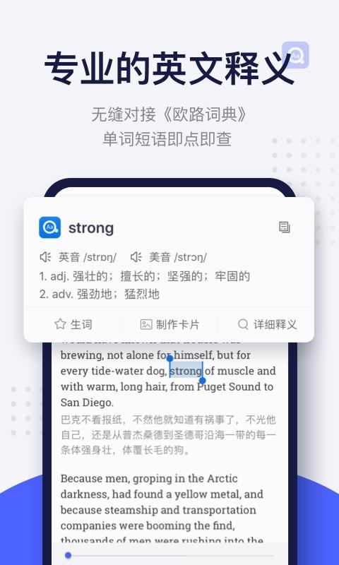 5、方便快捷的翻译辅助,只需要在文章中选中相应单词就能得到专业额翻译结果;