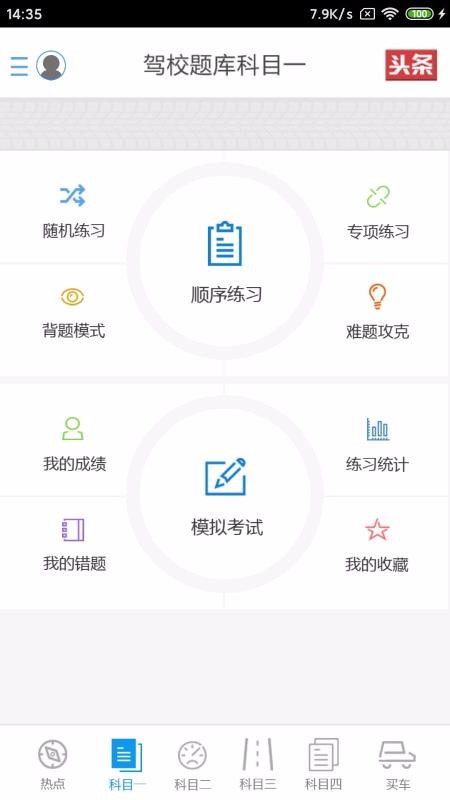 1、打开应用到首页,进入科目一页面,选择练题模式进行练习