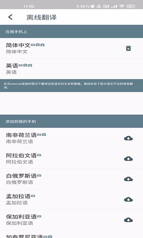 3、设置了便捷的离线翻译模式,只要下载了语言包就能在离线模式下翻译该语言;