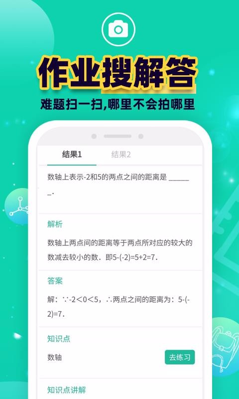 拍照搜题,秒速获取解析、解答、知识点视频讲解及同类题练习