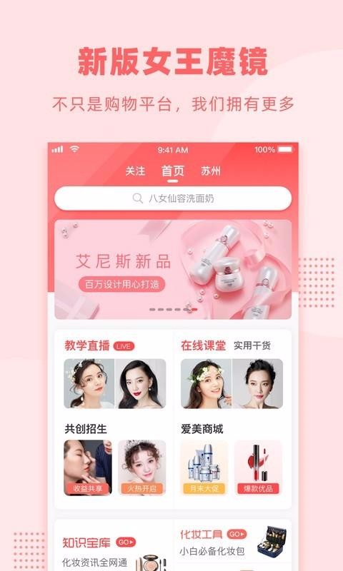 女王魔镜是一个美业在线学习平台,包括美容、化妆、美甲、形象设计等;拥有在线课堂,为你推荐了相关的学习视频,观看视频后即可学习到相关知识;在教学直播中,各种美妆达人一步一步的教你如何化妆,每个直播都为你标注了教学的内容和化妆关键词,在观看直播过程中还可以询问主播使用的是什么化妆品;在知识宝库中,推送了关于化妆、皮肤管理等方面的知识,通过视频为你进行了详细的介绍;这里还有精品商城,为你优选了各种护肤或化妆产品,还有各种限时秒杀活动,让你用最优惠的价格买到满意的美妆产品。