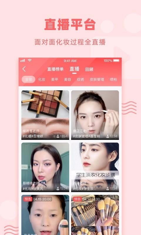 2、各种美妆达人通过视频直播教你化妆,还有相应的直播回顾;