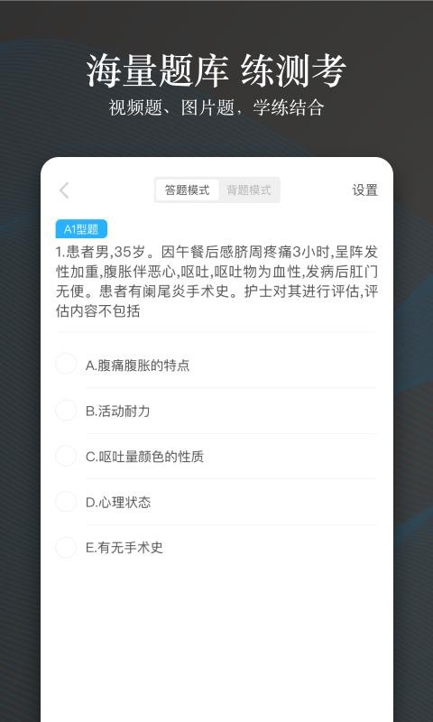 3、提供答题和背题两种练习模式,让用户能够根据实际情况进行随意切换;