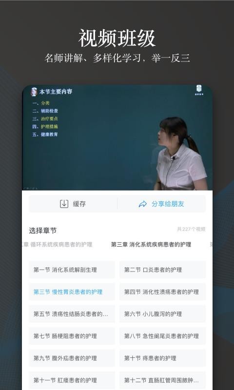 4、选择各种班级课程,快速加入班级观看讲解视频,缓存视频离线观看