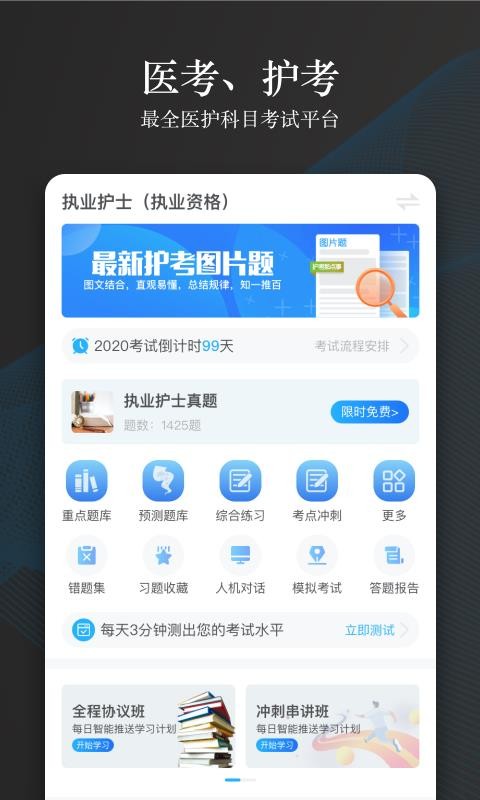 创序医考app是一款为医考和护考用户提供服务的软件,让用户能够更轻松的学习各种医考和护考知识,顺利通过考试;应用中的题目包含了海量的医学职称考试题目内容,让用户能够学习到最全面的考试知识,让学习变得更加高效,更轻松的完成考试;用户通过软件可以体验到特色的学习计划,根据自己的学习情况改变计划内容,让自己能够更深刻的记忆各种知识内容,避免遗忘;在这里你还可以找到各种在线学习班级,和其他考生一起学习各种知识,提升学习乐趣;快下载这款软件试试吧,方便快捷的学习各种医考和护考知识。