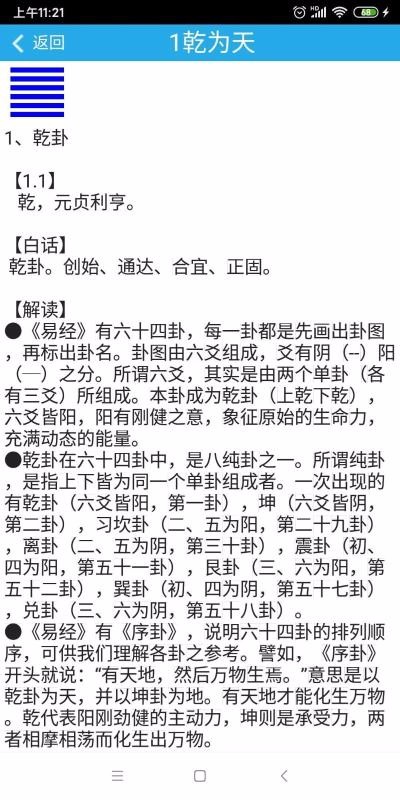2、每一卦的解读信息能更好的了解每一卦的产生背景,了解博大精深的文化;