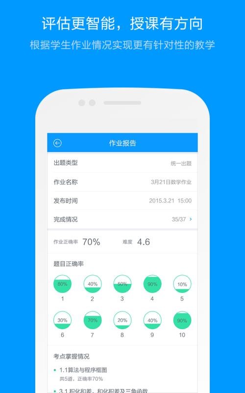 4、智能的进行分析,通过平台能够全面的了解学生的学习情况,更好的使用;