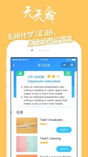 2、全面的英语学习工具,可以学习英语单词、听力训练、学习英语语法、开口说英语;