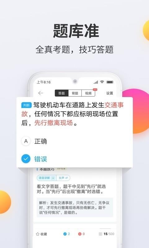 驾考宝典科目一app是专为备考驾照的用户提供的一款在线学习软件,这里能够为用户提供海量的试题资源,覆盖了小车、货车、客车的题目,可以更好的满足用户的刷题需求,同时还拥有多种考题练习模式,为您提供了章节、顺序、随机、强化练习多种模式供选择,你可以根据自己的需求进行选择,让你可以更好的在这里进行学习,从而得到更好的学习效果;系统还可以自动收录错题,并对你的错题进行归类,可以让您更好的在这里练习,还拥有的大量的历年真题,让你在这里可以得到针对性的练习,可以更好掌握各大知识考点。