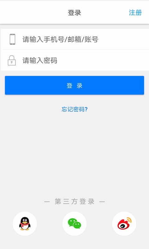 1、设置了多个第三方登录快捷选择,登录的时候能看到QQ、微信与微博的第三方选择图标;