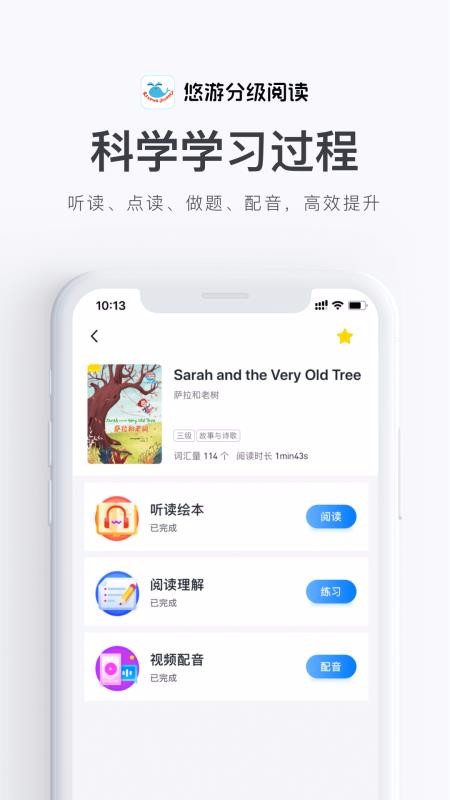 悠游分级阅读是一款专注提升少儿英语阅读方面能力的软件,平台上拥有众多的阅读绘本资源,按照难度的高低进行了相应的等级划分,能循序渐进地培养小孩的阅读能力;为用户配套了悠游国际英语阅读教程(少儿版)一级电子教材,该教材中涵盖了系列的十几本电子读物,可以让孩子们每天阅读一点内容,全部学习完该电子教材中的所有知识;另外还为用户推荐了海量的绘本读物,能从读物中的封面看到这些读物大概讲述的故事以及专注的学习方面等信息,随时都能阅读到新的优质绘本内容,天天进入平台,天天都能挑选最新的绘本阅读,为少儿们提供了满满的新鲜感。